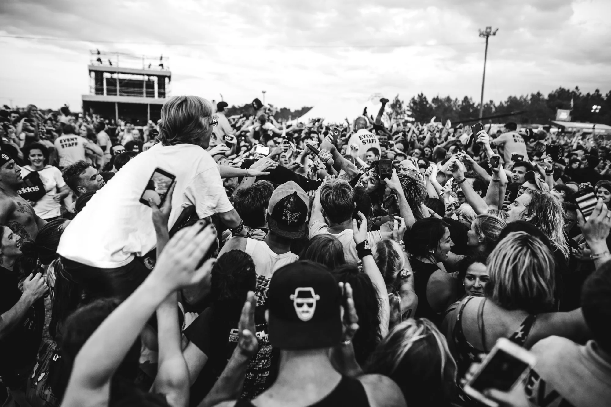 I thought Oli was going to die. About 200 kids came over the barricade. Yes, this was taken in the photo pit. These kids are in the photo pit. It was EPIC. He survived.